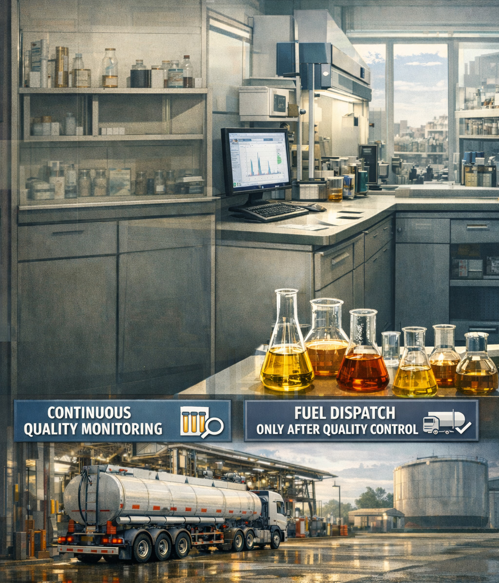 The in-house laboratory including RON test engine enables continuous monitoring of the quality of